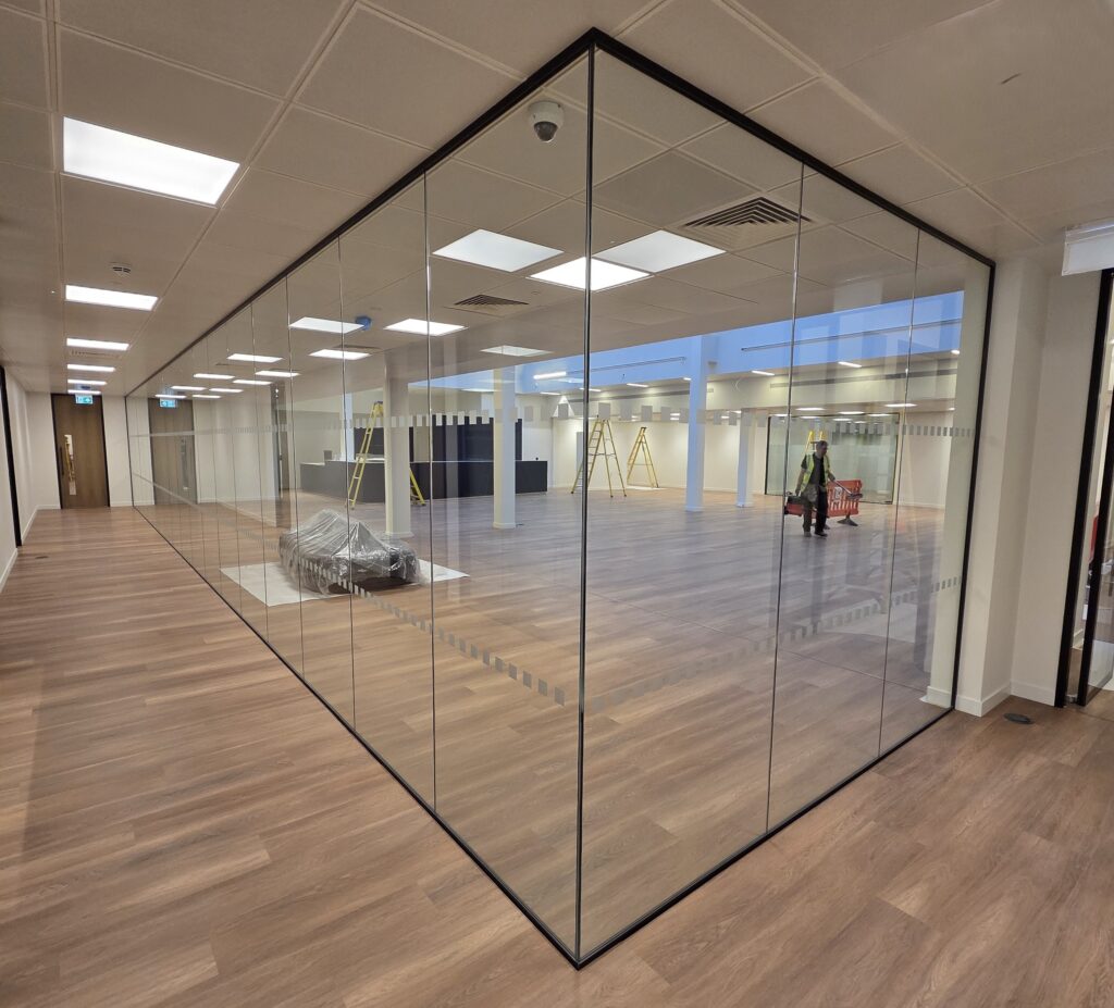 - Clear Double Glazed – Double glazed partition system with mullions, providing up to 50dB Rw.