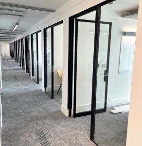 75 of our Contempo Light single glazed acoustic doors delivered and installed successfully on this 3 storey project near Farringdon. With its slimline 40mm perimeter chassis and 41dB acoustic rating it’s no surprise our Contempo Light door is proving to be extremely popular. You can experience the industry leading acoustic performance of the Contempo Light door for yourself by arranging a visit to our newly refurbished Clerkenwell showroom. Please get in touch with our specification team directly via specify@fusionpartitions.com to arrange your visit. We look forward to seeing you!
